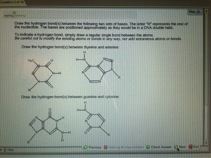 Draw The Hydrogen Bonds Between The Bases The Letter R Represents The Rest Of The Nucleotide Brainly Com