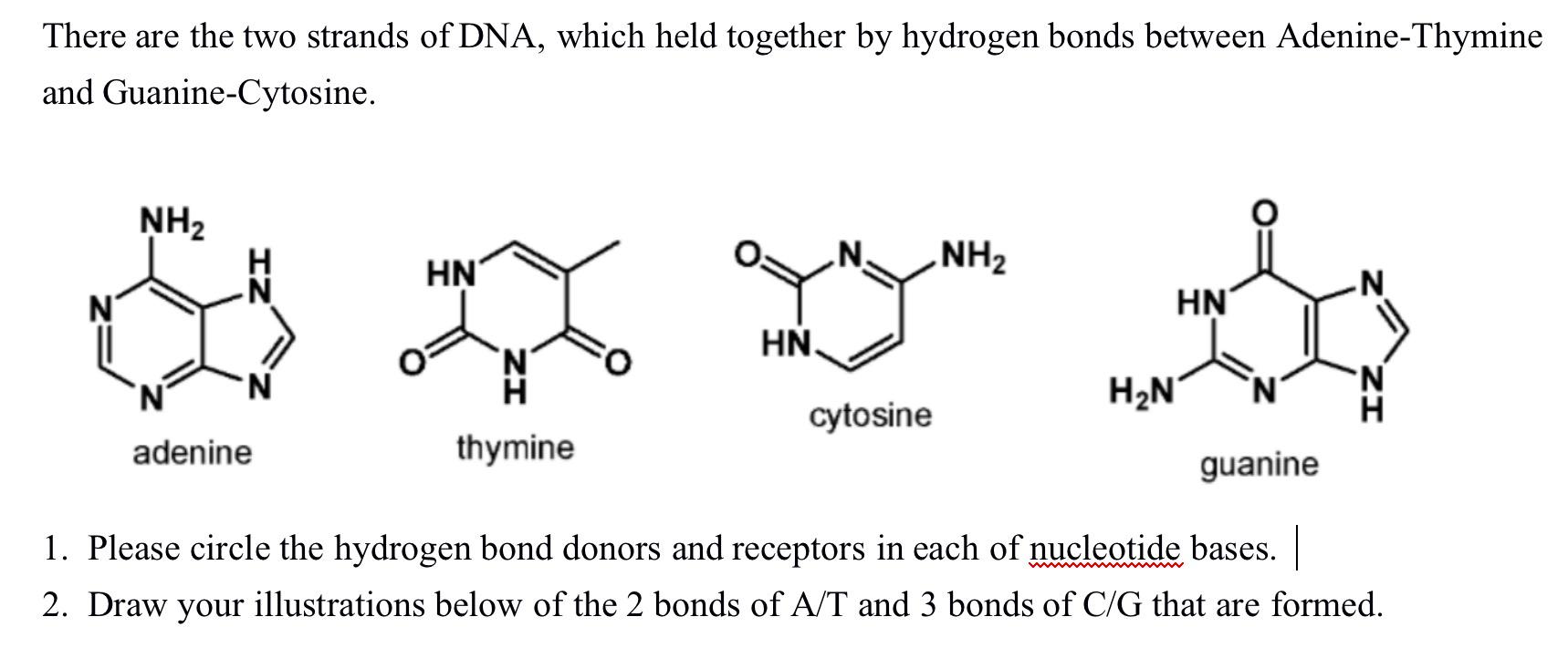 Draw The Hydrogen Bonds Between Thymine And Adenine Draw The Hydrogen Bonds Between Guanine And Cytosine Image Src Bonds2725479140435115755 Jpg Alt Bonds Caption Study Com